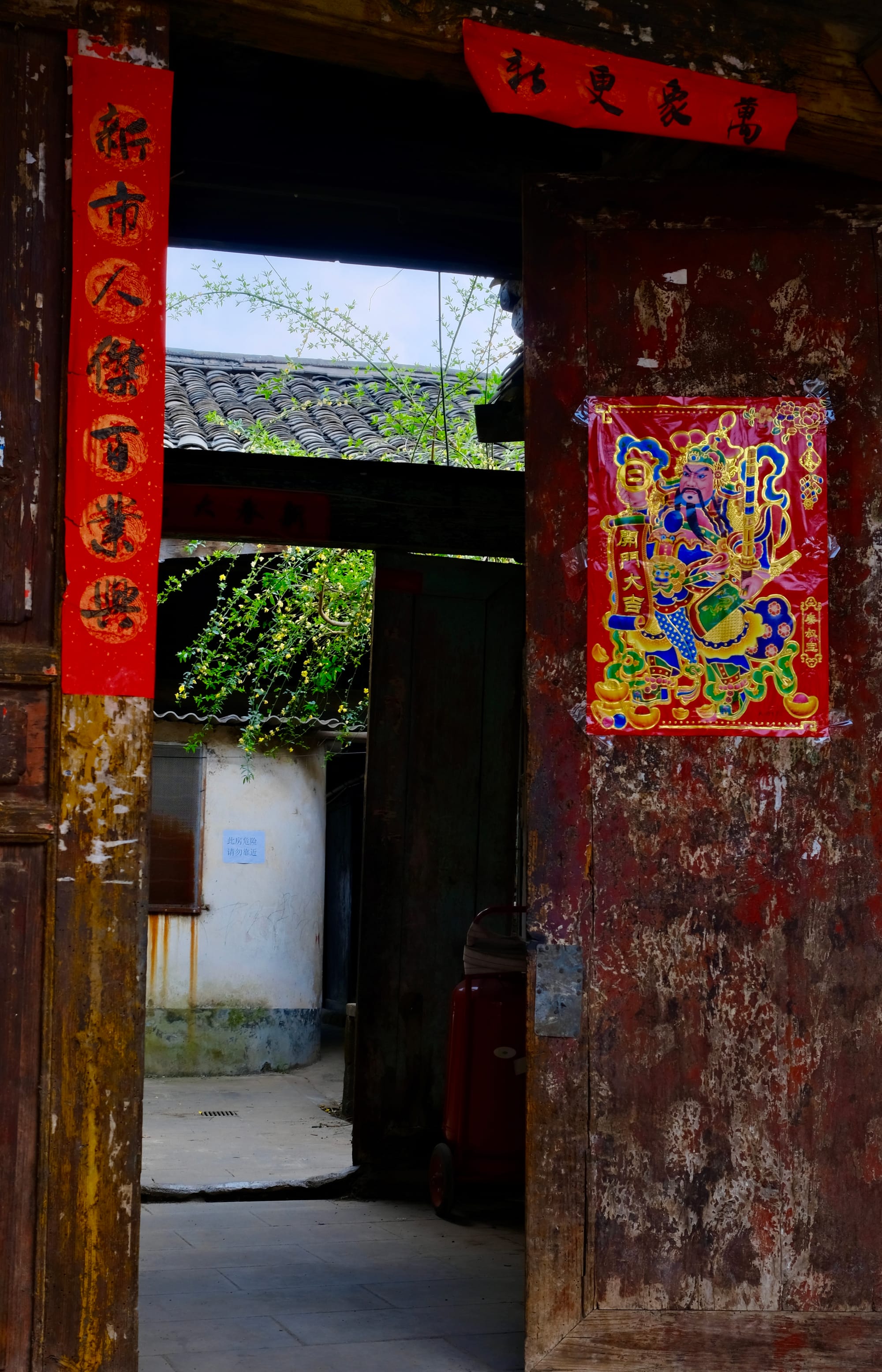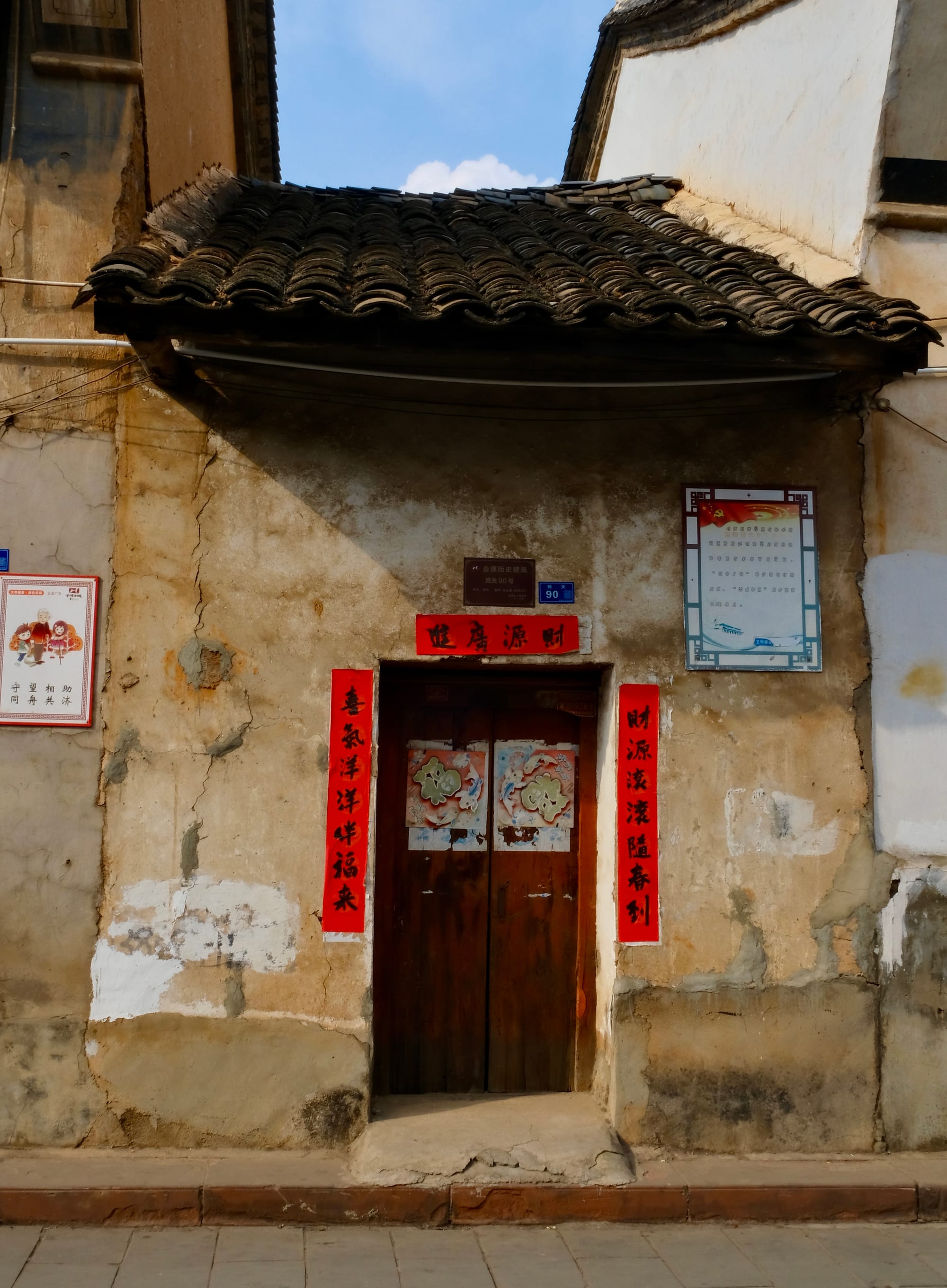 Historic buildings in Huili, Sichuan. People still put red stickers for the new year to wish for the fortune and wellbeing.