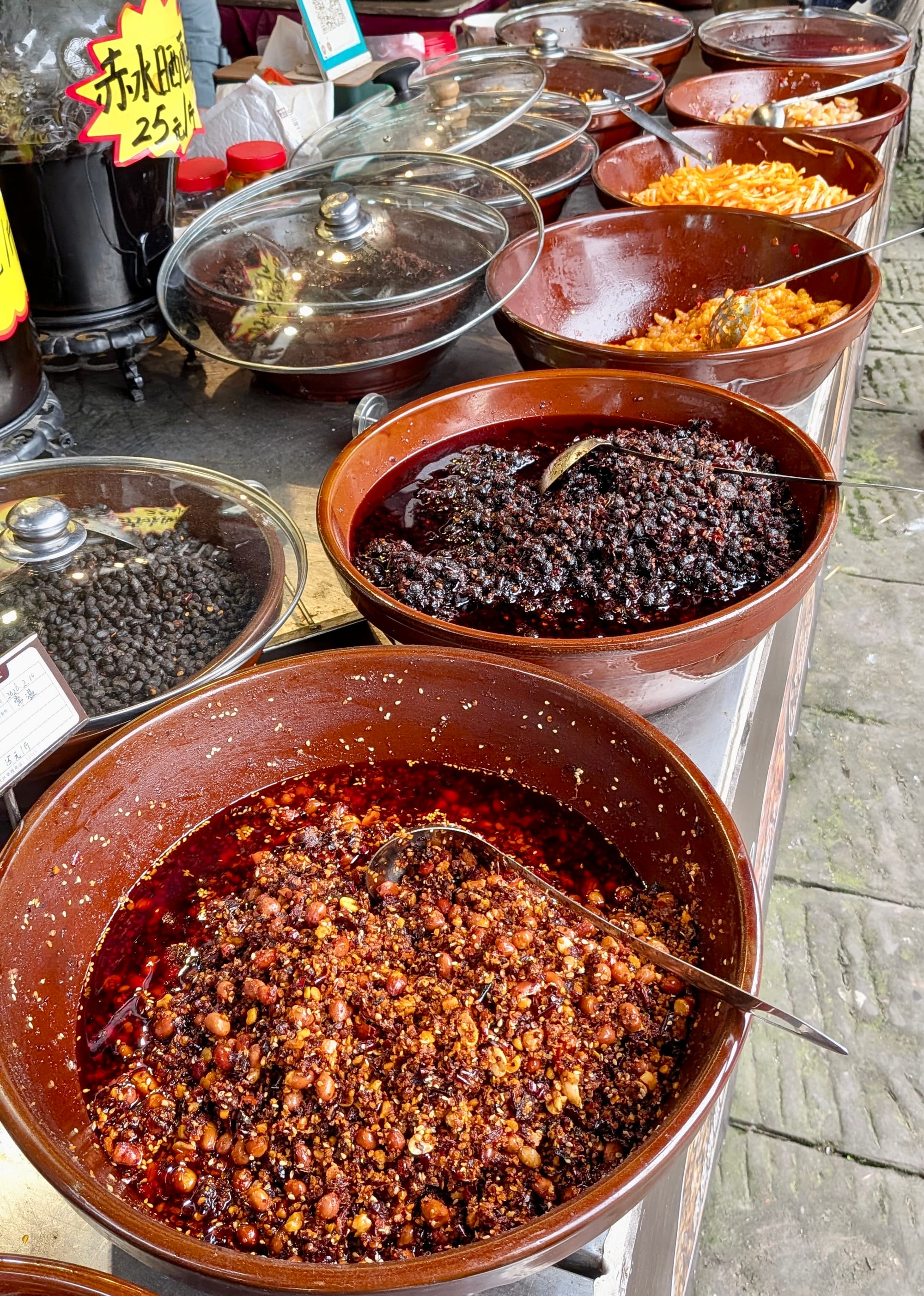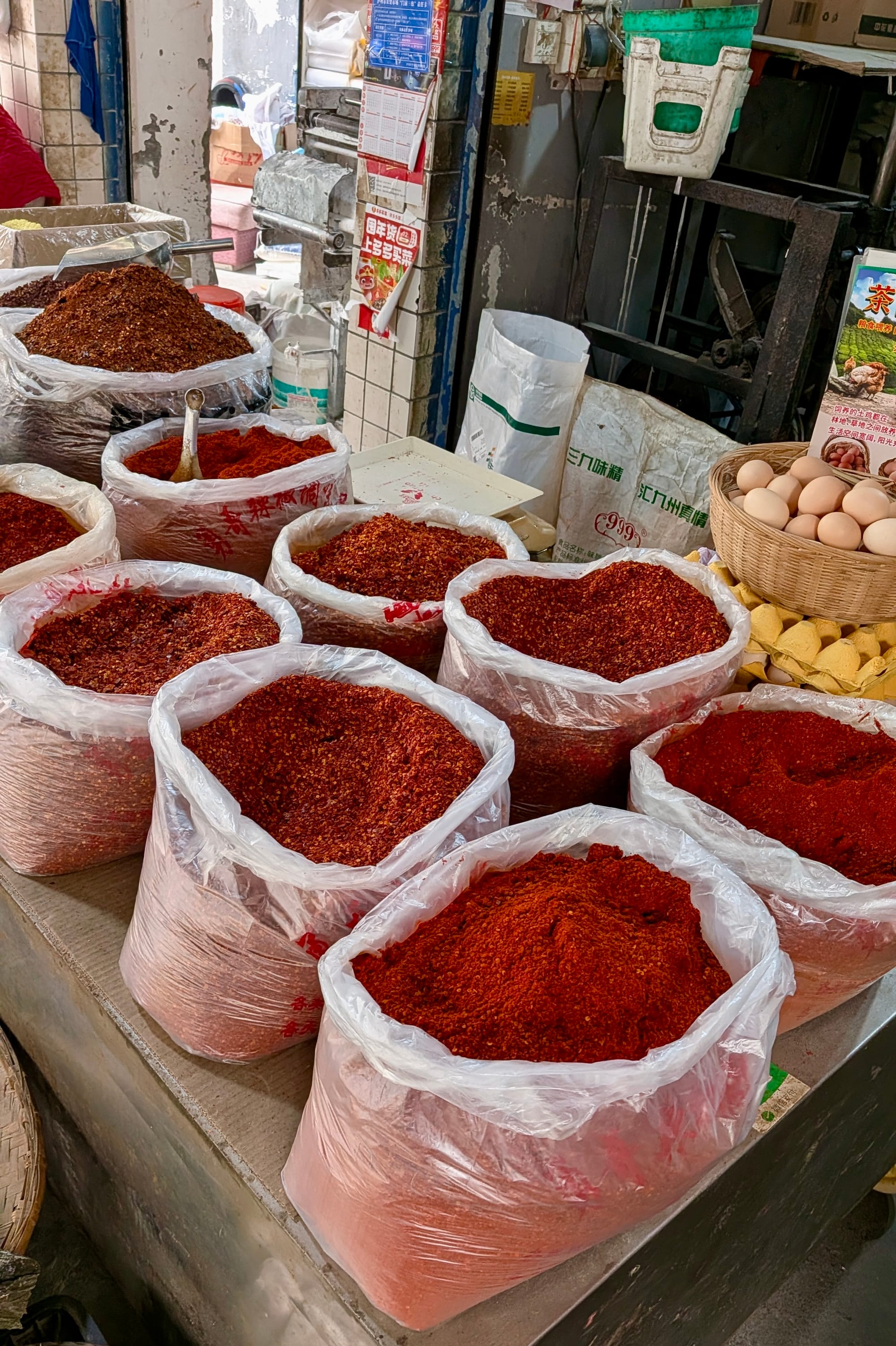 While passing a stall selling green Sichuan peppercorns, I stopped to take a closer look. The numbing flavor these peppercorns bring is unique. I remember the first time I ate a dish containing them; I was unaware of the effect and thought I was having an allergic reaction! Luckily, a friend explained that the sensation—called Ma in Chinese cuisine—is normal. When paired with spicy chili (La), it creates the signature spicy-numbing flavor known as Mala. I quickly became addicted to it.