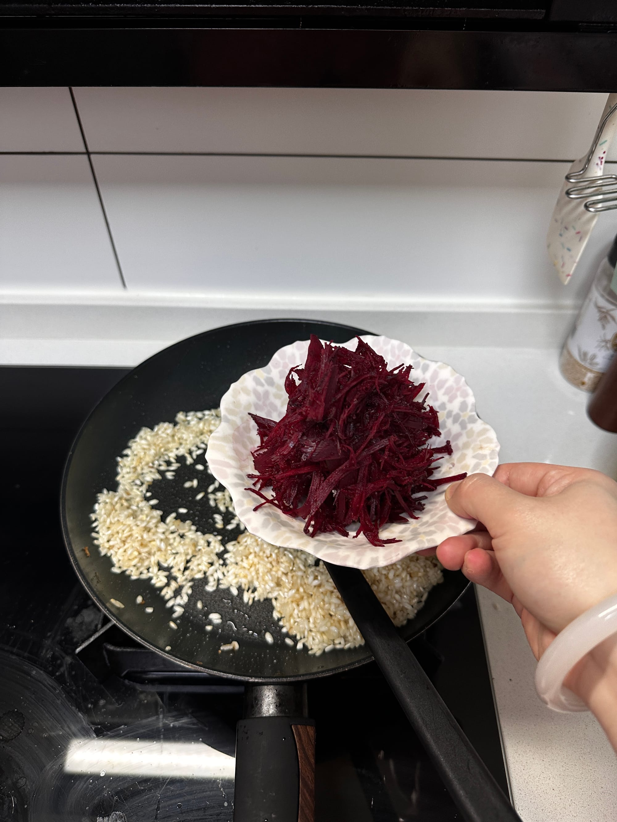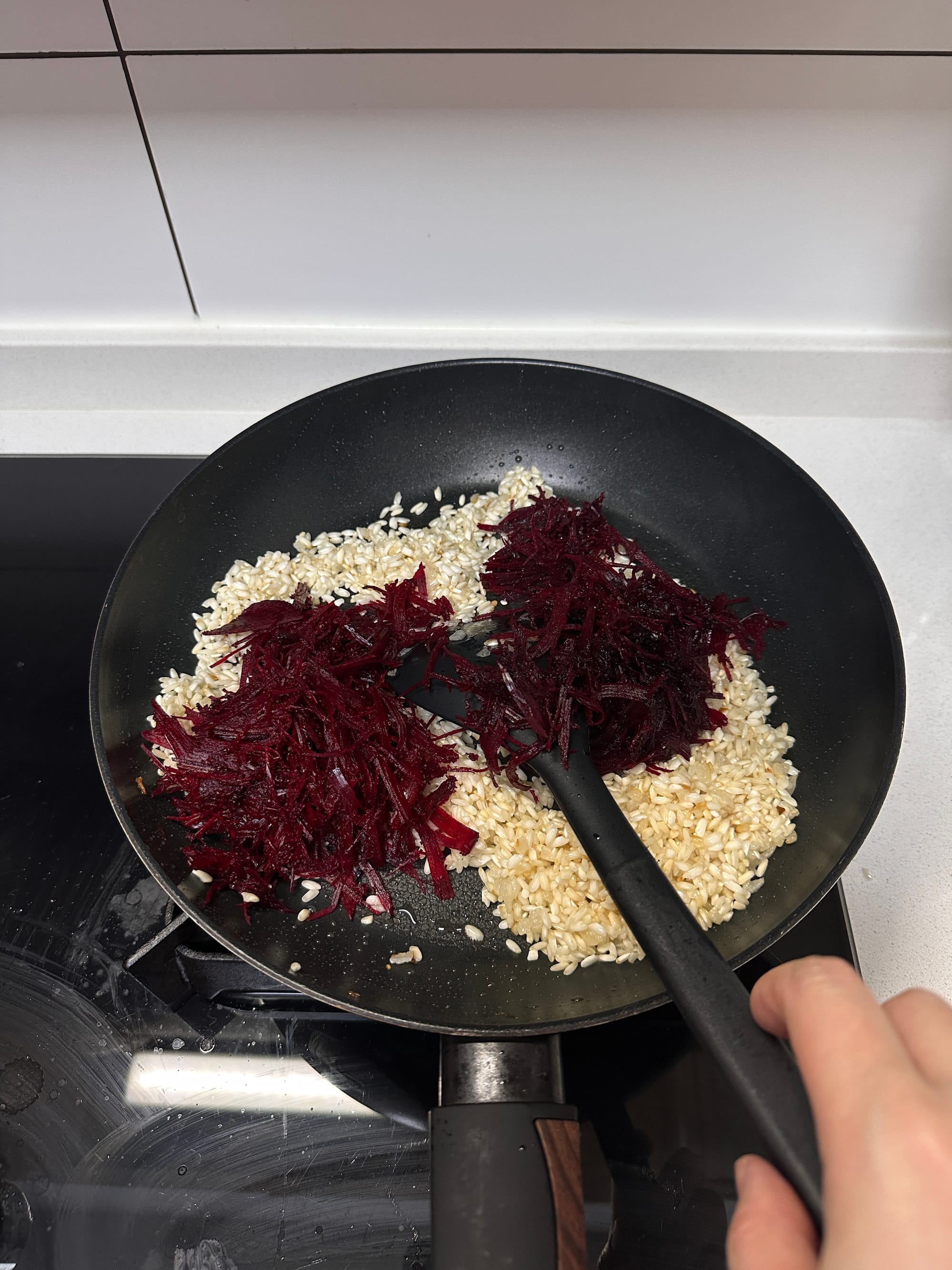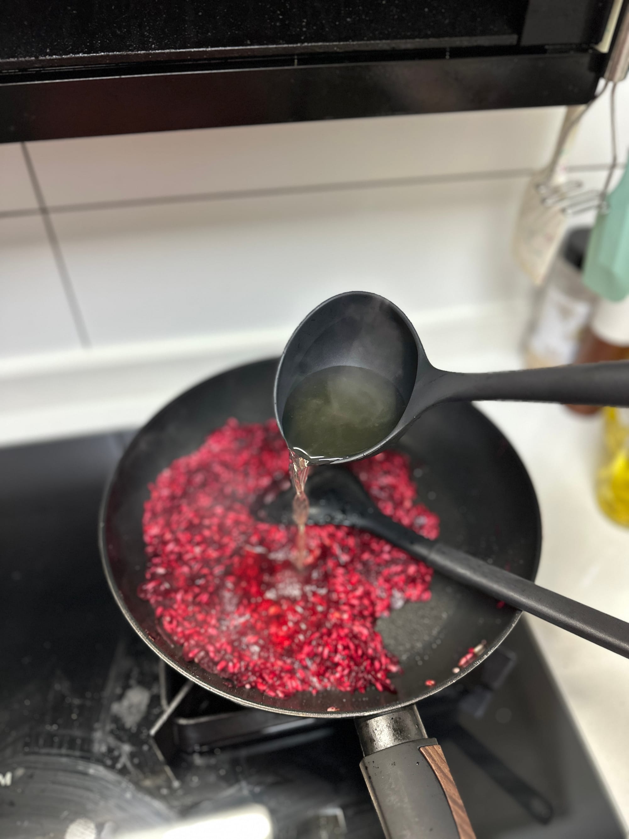 Always keep the broth hot. Cold liquid will shock the rice and slow starch release. Wear gloves when handling beetroot to avoid staining.