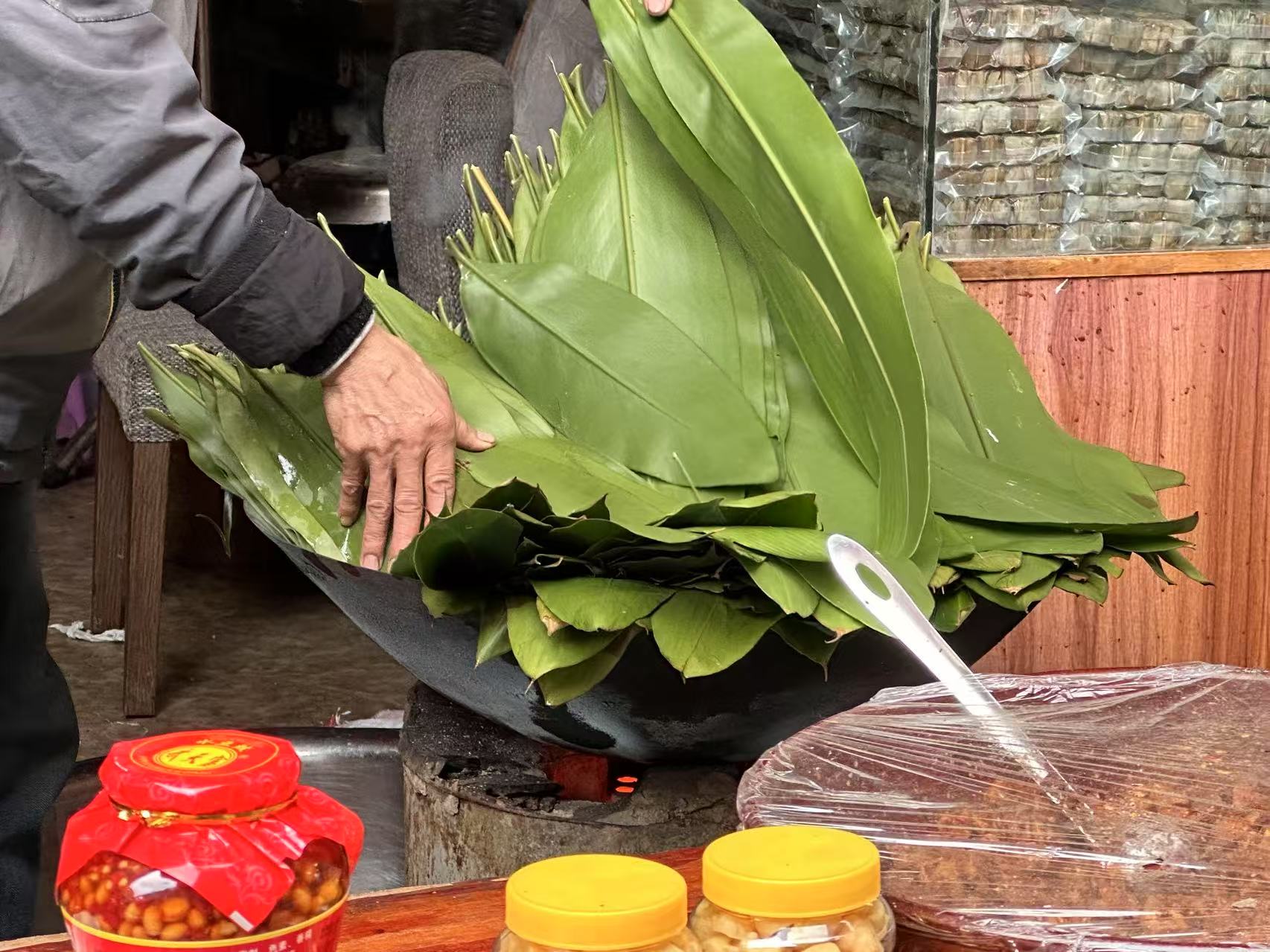 Then everything changed when we stopped at a random stall selling Huangba—a fermented rice cake wrapped in fragrant leaves. He quickly approached us and said it was from his hometown, and that he knew the best way to cook it. He then suggested we go back to his hometown, Yaoba Historic Town, to get the most authentic Huangba. So, we continued our journey to Yaoba, thinking he would take us to a familiar shop.
